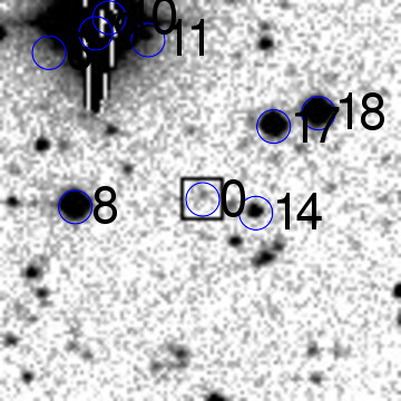 Pre-discovery 5' Catalina Sky Survey coadd image (transient location marked with 0)