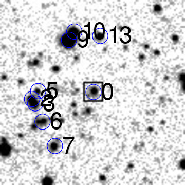 Pre-discovery 5' Catalina Sky Survey coadd image (transient location marked with 0)