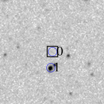 Pre-discovery 3.6' Siding Spring Survey coadd image (transient location marked with 0)   ID    RA         Dec (2000)      mag      delmag    delra (")    deldec (")  PA (deg)